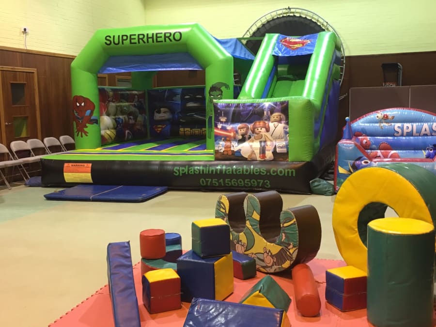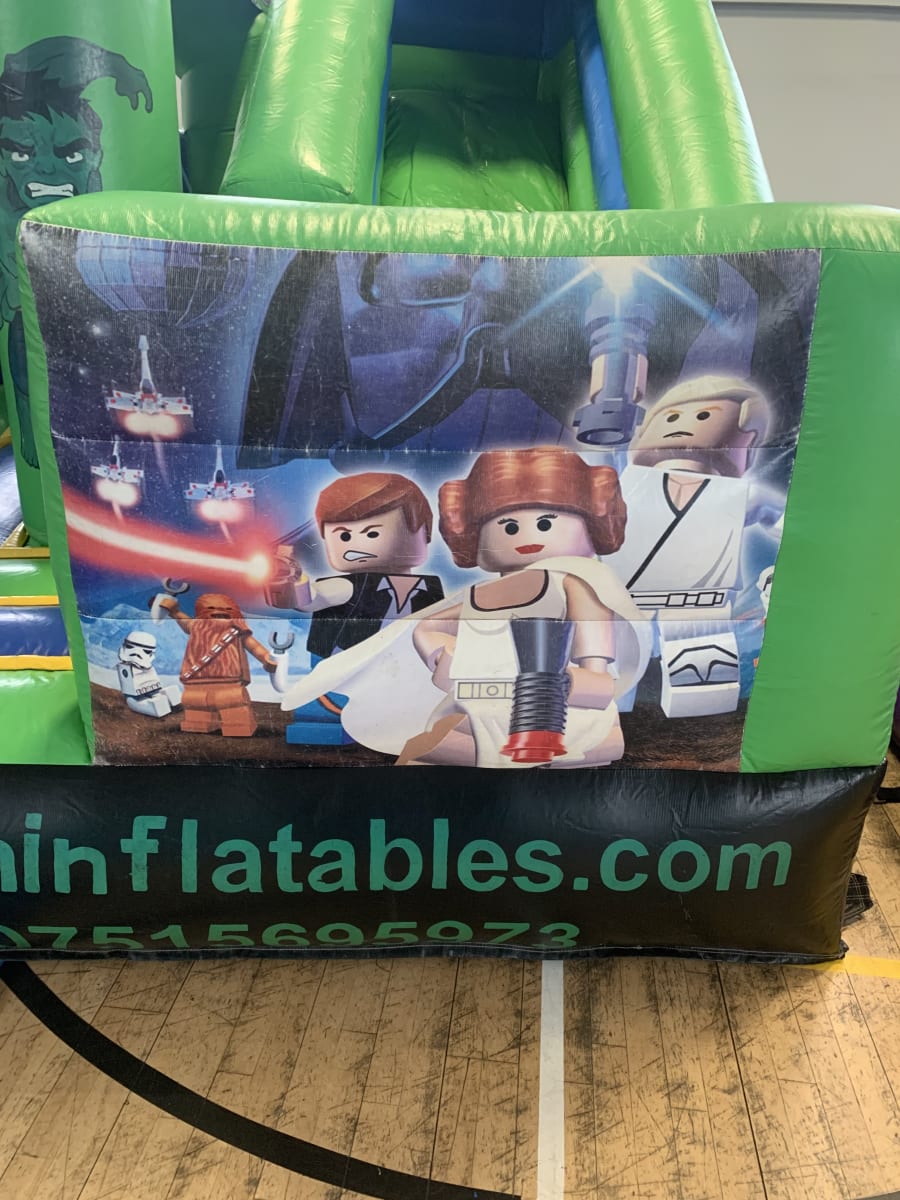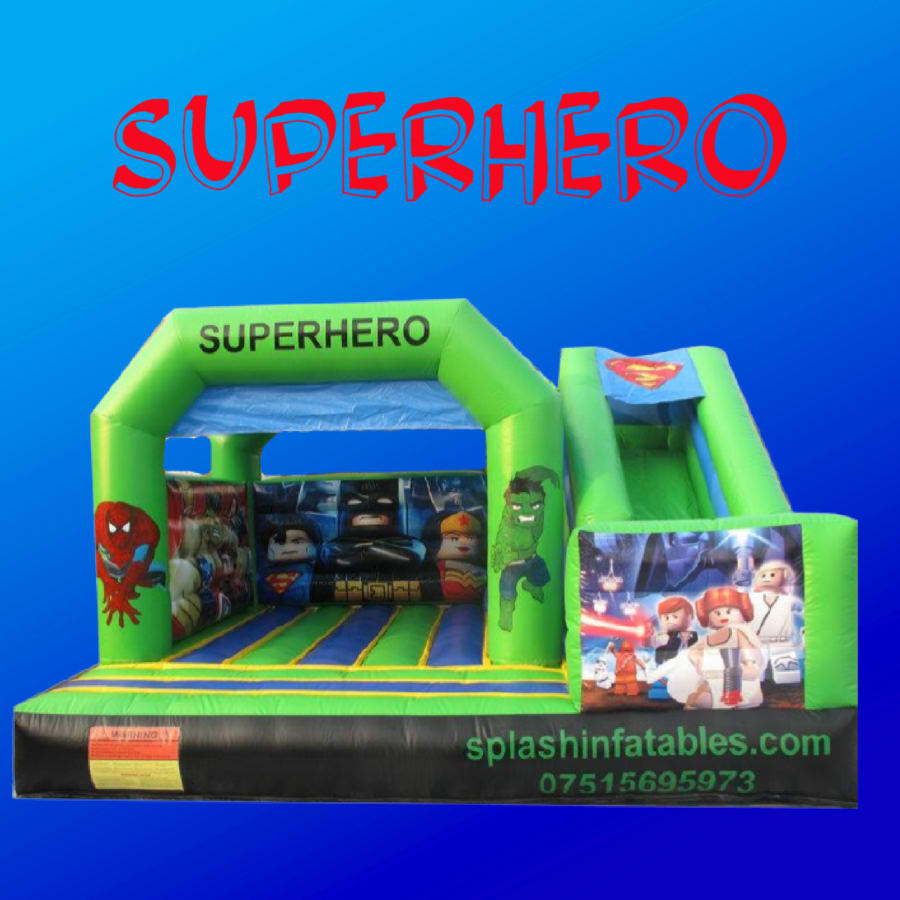 Wonderful Green superhero bouncy castle for all the little superheros out there!