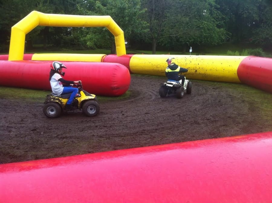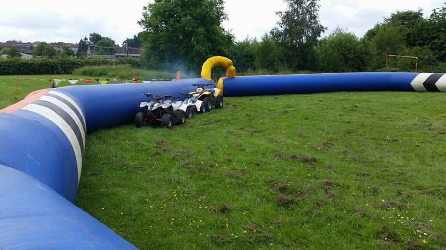 Our 60ft x 80ft inflatable quad bike tracks can accomodate 3-4 quads running at a time.