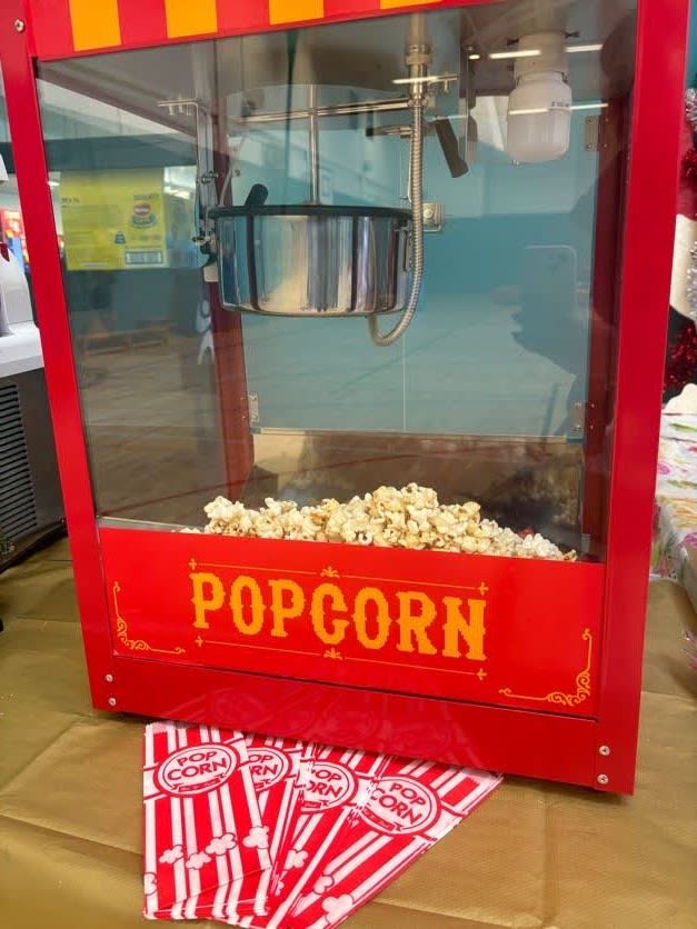 Fantastic table top popcorn machine brought to your venue It lights up and keeps popcorn warm for optimum taste. Comes with all the popcorn, popcorn bags