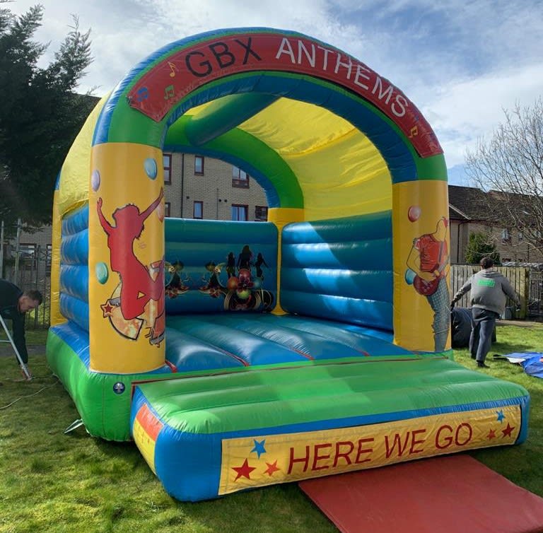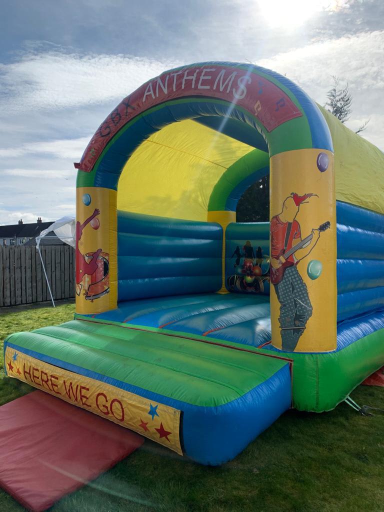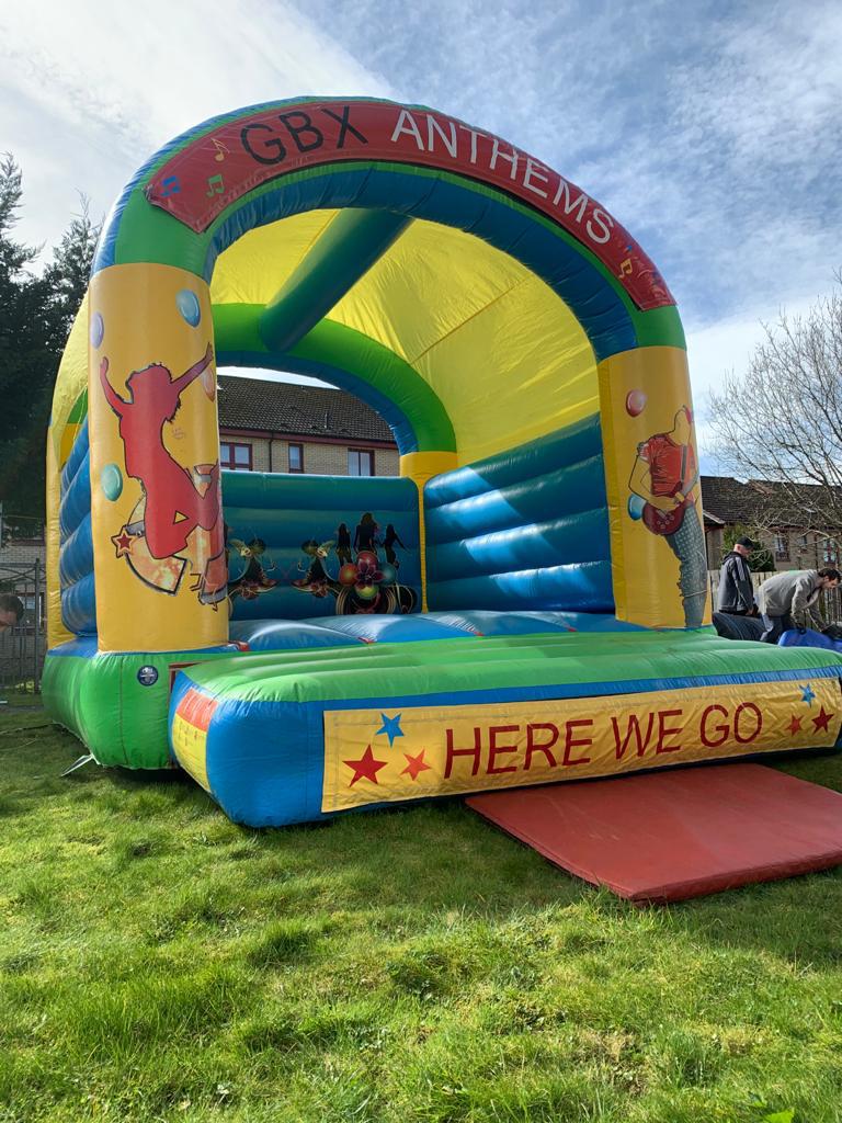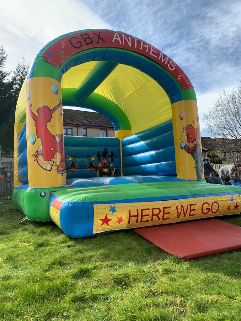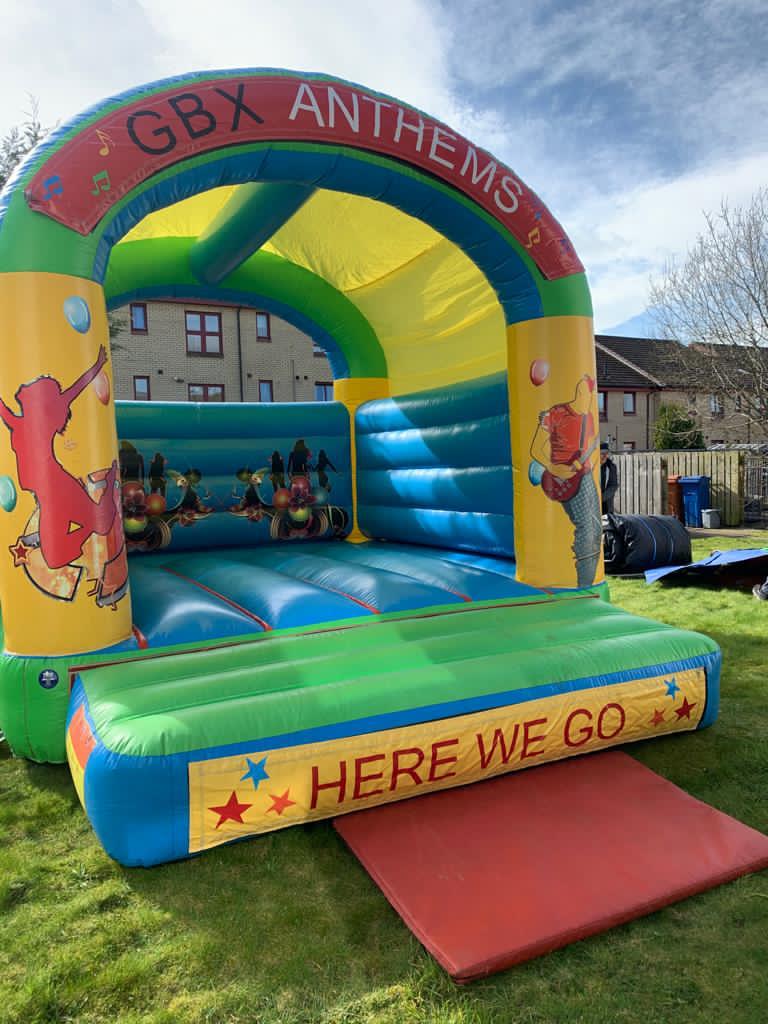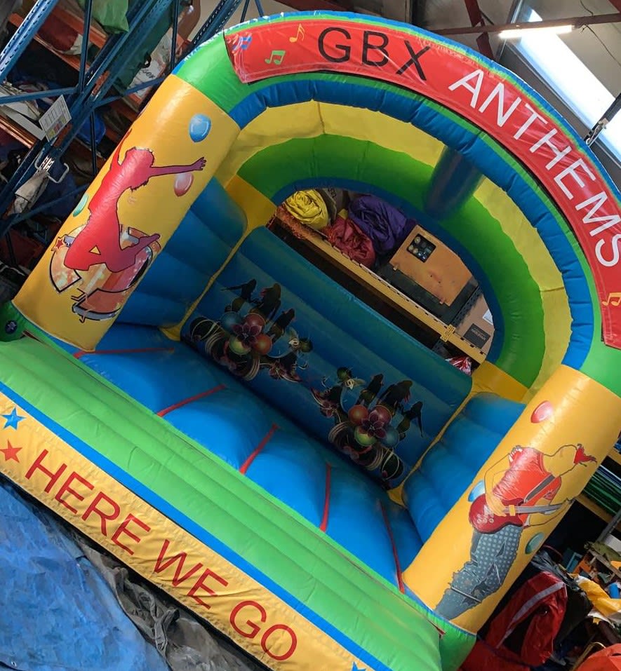 This is a lovely GBX Anthems themed Bouncy Castle avaialble for hire. (Great Bouncing Experience)