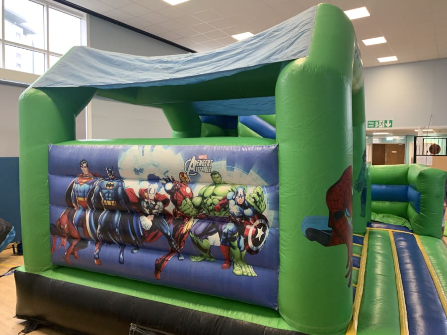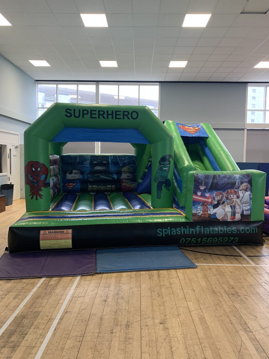 Wonderful Green superhero bouncy castle for all the little superheros out there!