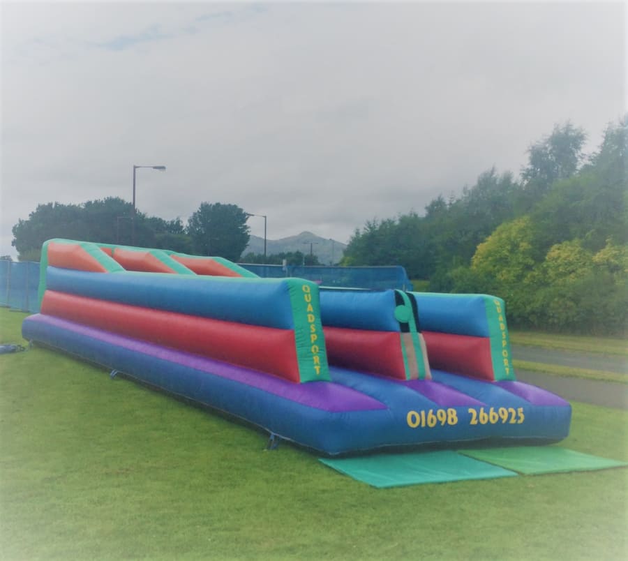 Suitable for event participants 1m in height or over. Each contestant attaches a body harness before attempting to run as far as he/she can before the bungee cord catapults them back to the start. Race against each other to see who can place the velcro marker furthest along the centre wall before losing their footing!